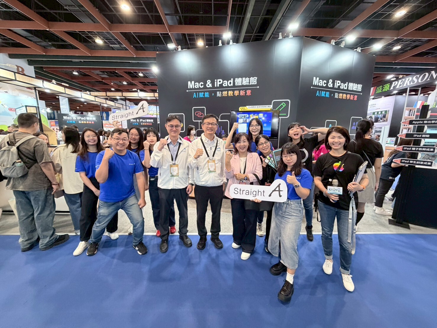 新北市教育局局長張明文蒞臨 Straight A「Mac & iPad 體驗館」展區,並與團隊合影留念。