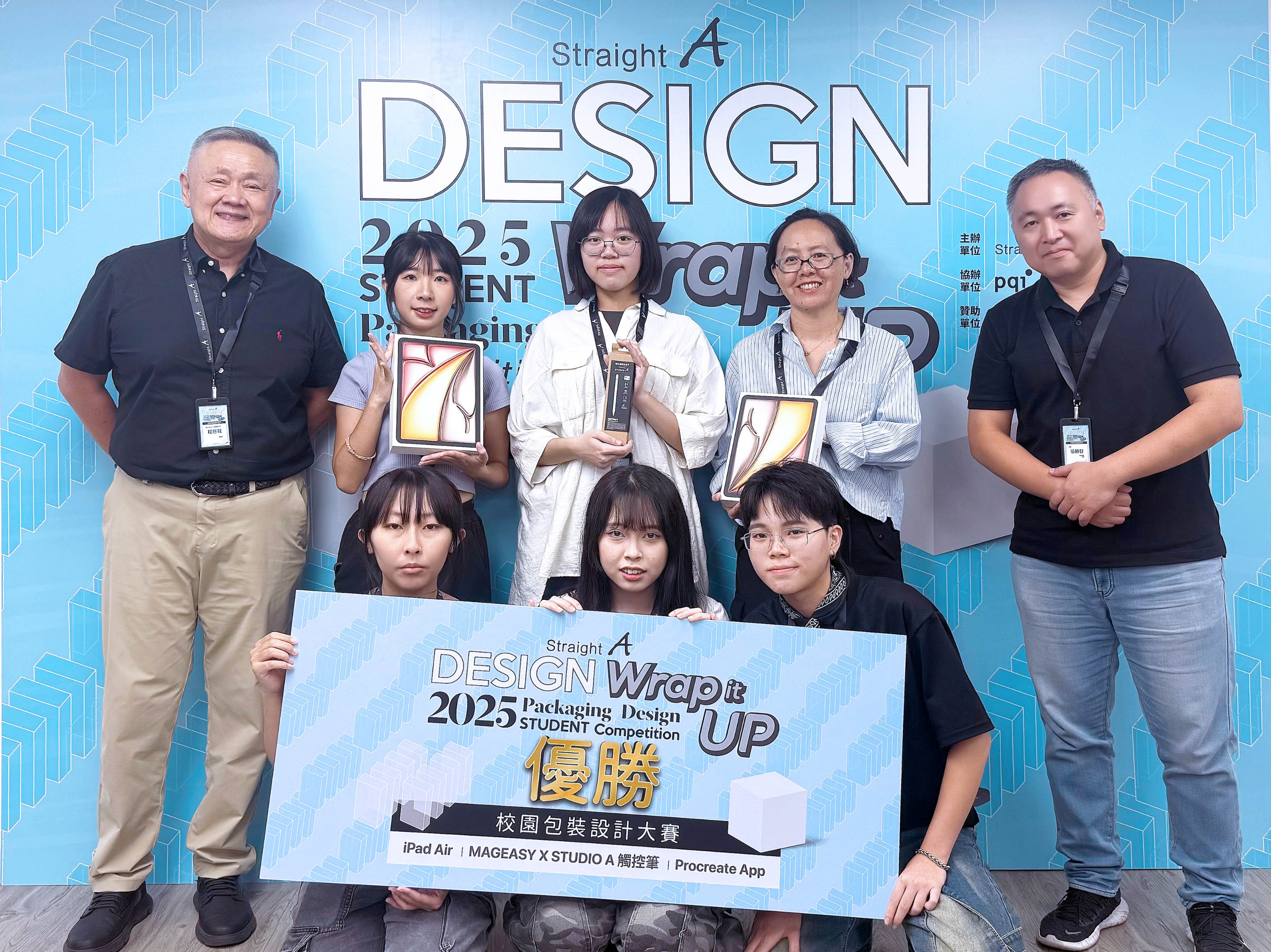 後排左起Straight A晶盛科技總經理程應龍、臺北商業大學楊胤媞、臺北商業大學童悅容、中正大學李佩瑄家長代表、PQI產品開發經理張勝智;前排左起臺北商業大學李羽仙、陳宣羽、謝培瑜
