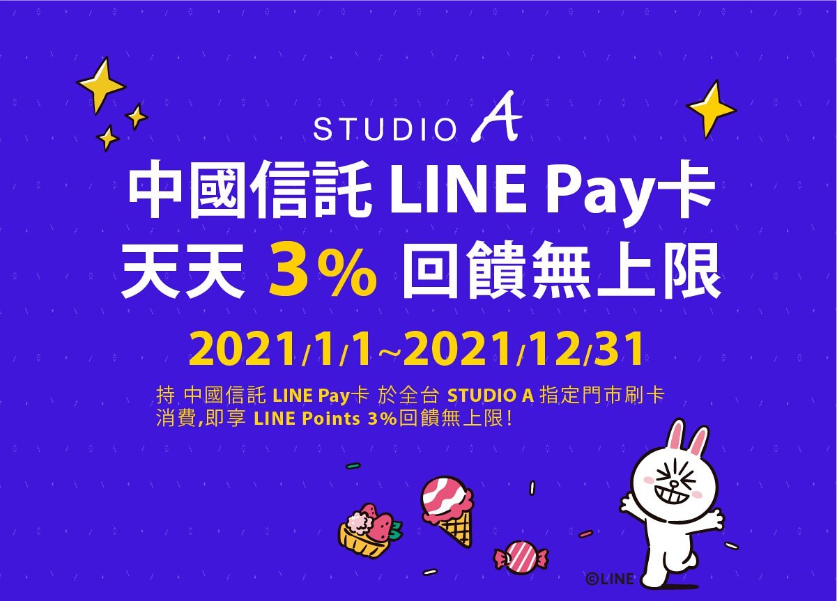 『STUDIO A x 中國信託LINE Pay卡指定商店消費加碼回饋活動計畫』活動說明及注意事項