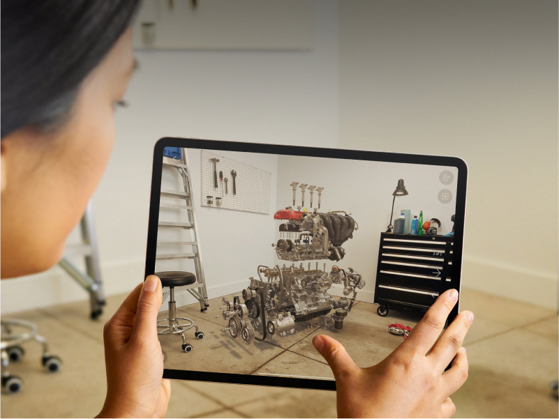 iPad 可以讓學生進行各種 AR 擴增實境的學習體驗,如 Froggipedia App 可以讓學生在教室環境裡,拿著 iPad 就像在面前看到一隻真實的青蛙一樣觀察,探索甚至解剖。又或者如 「AR Makr」讓學生可以在 iPad 自行製作 AR 圖像,透過 iPad 結合校園實景做各種教學示範,讓課堂的教師與學生體 現截然不同的學習方式。