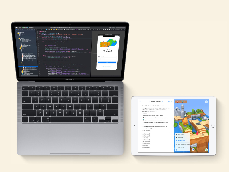 iPad 有程式編輯學習 App 由 Apple 所設計的「Swift Playgrounds App」可讓學生在 iPad 上學習編輯真正的 Swift 程式語言,藉由遊戲闖關的方式,循序漸進建立學生的程式邏輯概念。教師也可以參考 Apple Book 上免費的電子書「人人可編碼」安排課程內容,引領學生學習真正的開發語言,不再只是拖拉方塊建立抽象概念而已,還能動手真正寫出自己的可執行性 App。