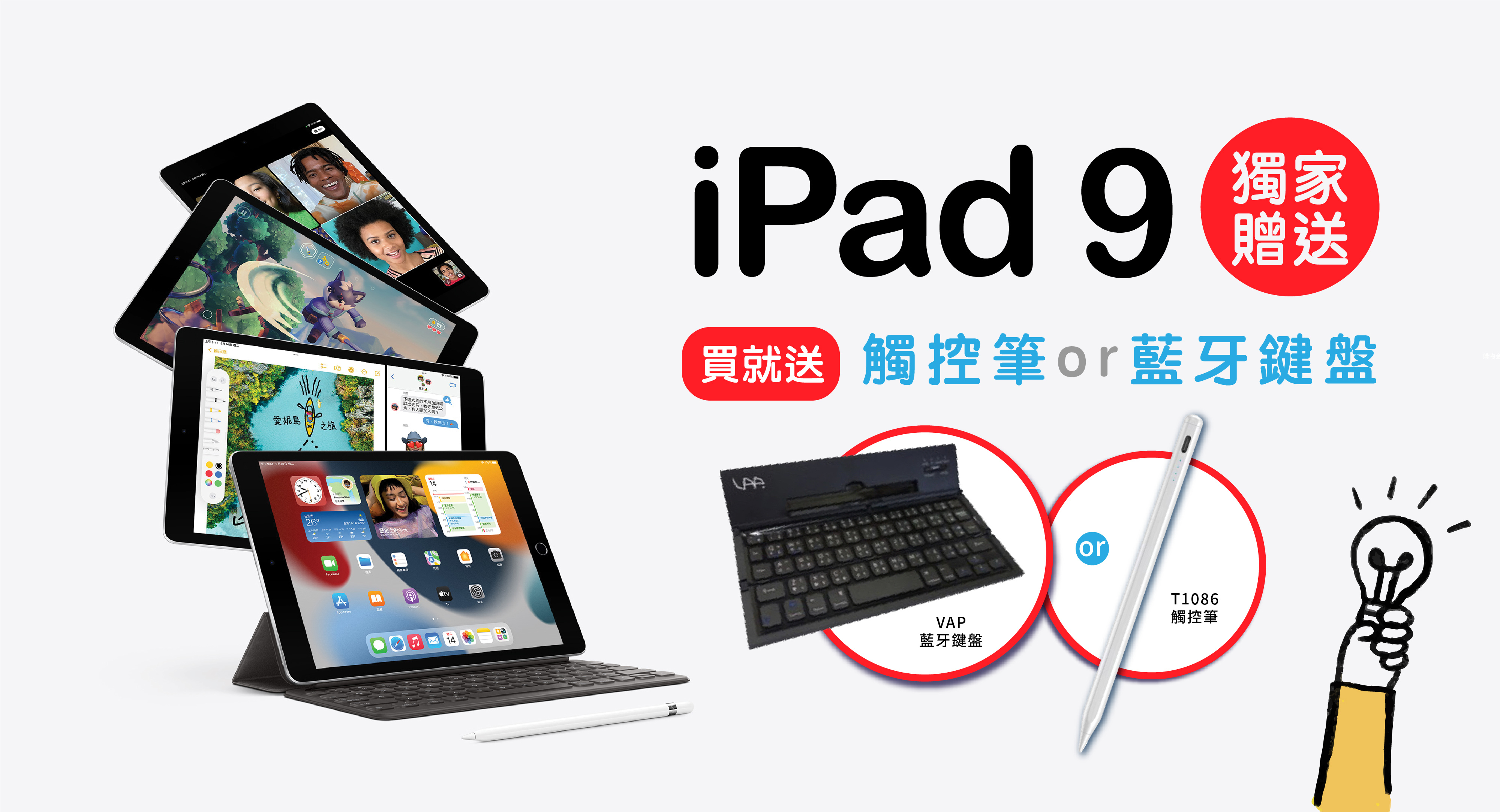 ① iPad 觸控筆 價值$1,190 或 ② iPad VAP藍芽摺疊鍵盤 價值$1,290